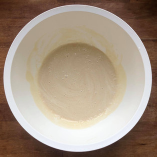 3. A part, mélanger la farine, la poudre d’amande, la levure chimique et le sel. Verser la préparation précédente à celle-ci et mélanger bien. Vous devez obtenir une pâte homogène.